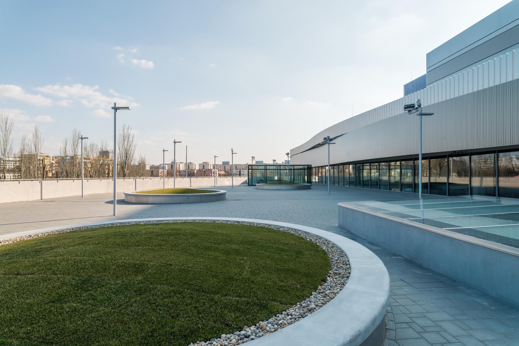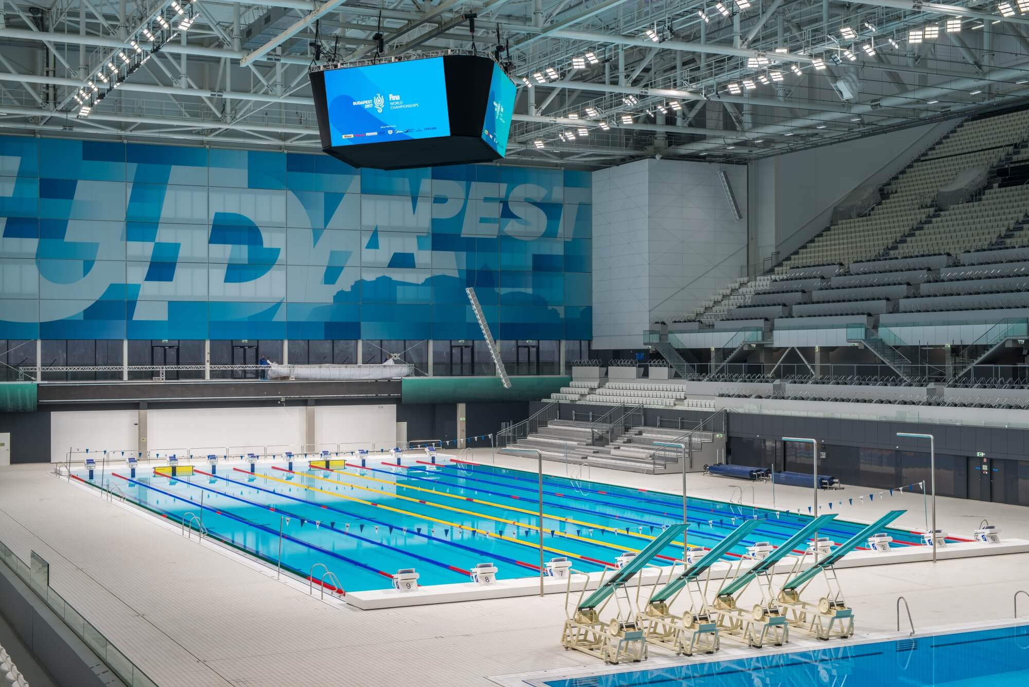 Az ötemeletes, 238 x 94 méter befoglaló méretű sportkomplexum 15 000 néző befogadására volt alkalmas a világbajnokság idején – a vb után ez a szám 6000 főre csökkent, a lelátók részleges elbontásával. Az épület szerkezeti alapját CFA technológiával készülő vasbeton cölöpök biztosítják, míg a teljes épülettömeget négy dilatációs egység tagolja: külön egység a fejépület, a főépület, a Duna-parti főhomlokzat és az ideiglenes lelátók.