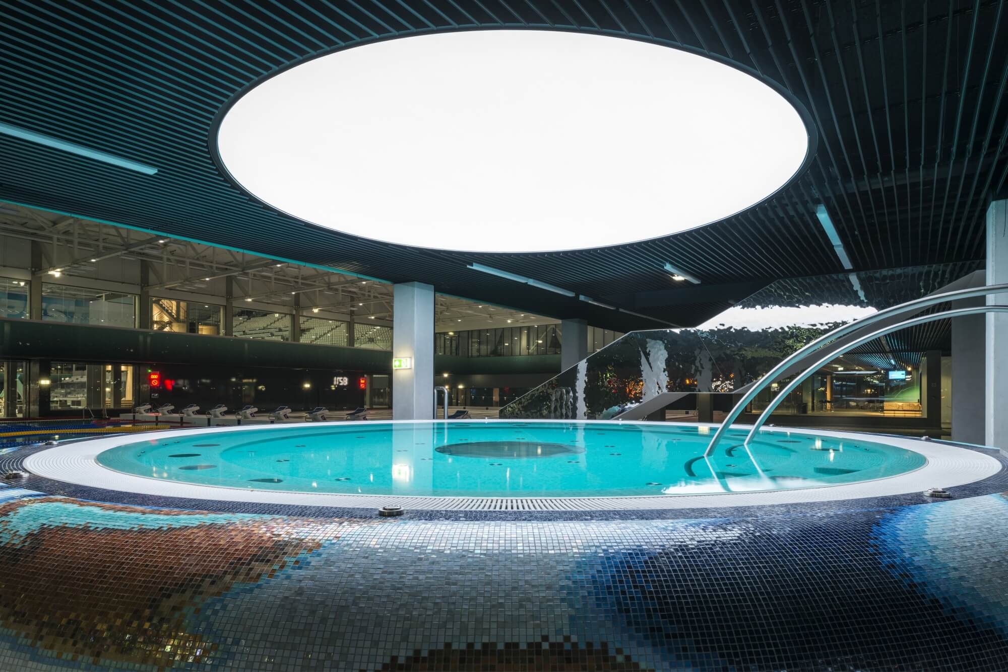 A fenntarthatóság kiemelt szerepet kapott a tervezésben és az üzemeltetésben is. Az épület fűtéséhez és hűtéséhez termálvízből nyert hőenergiát használnak fel, amely a rendszer teljes energiaszükségletének több mint egyharmadát fedezi. Ez a hőenergia biztosítja többek között a medencék vízhőmérsékletét, valamint a zuhanyzók és mosdók melegvíz-ellátását is.